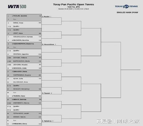 东京站:鲍里妮、莱巴金娜领衔,中国金花王欣瑜首轮对阵一位资格赛球员。