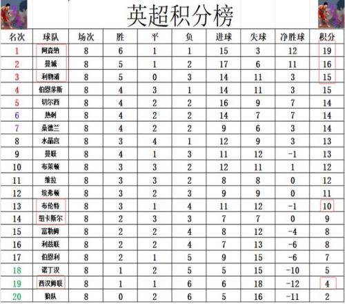 英超最新积分战报西汉姆联5轮不胜差曼联9分深陷降级区