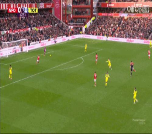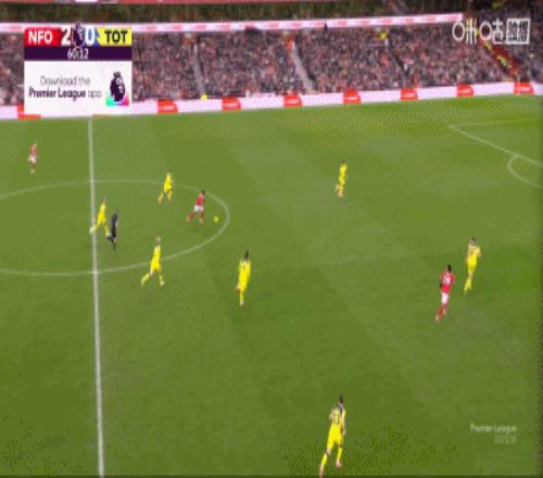 第28分钟,格雷后场被抢断,奥多伊推射空门,诺丁汉森林1-0领先热刺