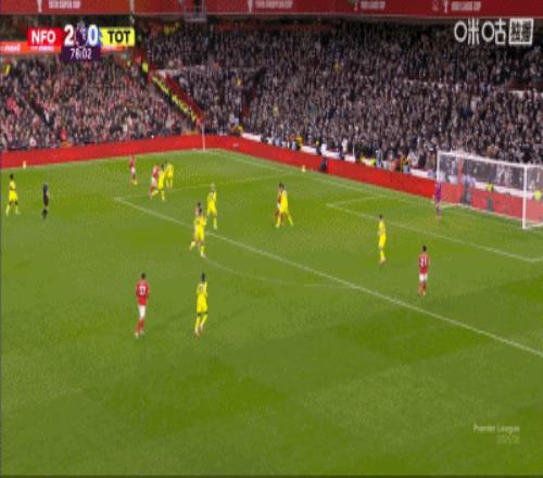 第50分钟,世界波!奥多伊吊射后点完成梅开二度,诺丁汉森林2-0热刺