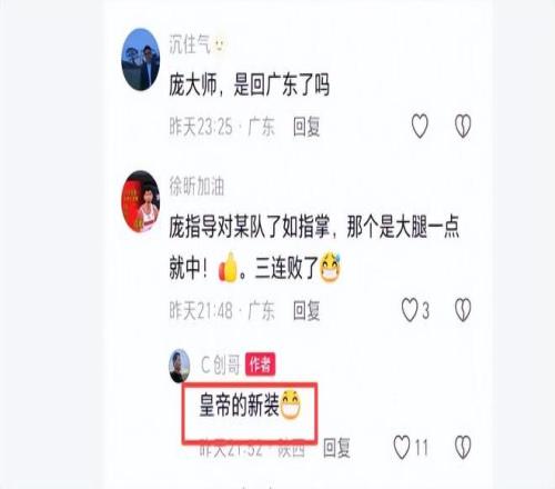 赛后有球迷与原山西顾问团队的庞启蒙交流,有人问:庞指导对某队了如指掌,那个是大腿一点就中!三连败了。庞启蒙颇有嘲讽意味地说:皇帝的新装。这很好领会,"新装"代表着那些看似美好、华丽,实则虚无的事物,就像是人们为了满足自己的虚荣心而追求的一些没有实际价值的东西。皇帝为了这根本不存在的"新装"大张旗鼓地游行,大臣们明明看不到却不敢承认。也许庞启蒙也想表达这样的意思:我们上季好好给你们当顾问,提出的战术没有延用下去,以为学到手了,可是离开我们还是不行。不少山西球迷,对没有续约春哥顾问团队感到遗憾。对此,你们怎么看?