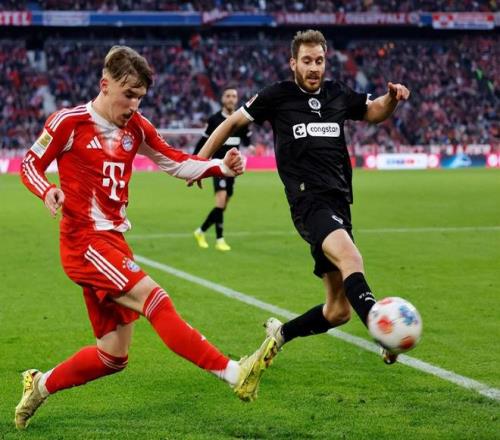 全场下来安联球场的门柱拒绝了自家球队的3次绝佳得分机会,好在幸运女神还是站在了拜仁这边。第93分钟,拜仁发动最后一攻,基米希右路接到格雷茨卡的分球后果断传中,迪亚斯中路高速前插冲顶头球顶入网窝,2:1!第95分钟,圣保利全体压上让拜仁打出反击,雅克松单刀赴会将比分定格在了3:1!凭借最后时刻的2粒进球,拜仁3:1取胜,送给对手9连败;同时拜仁在德甲创下连续44轮排名榜首的纪录,打破他们自己在1973年创造的纪录。