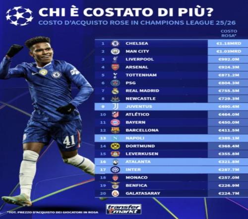 所以,从榜单当中不难看出,意大利俱乐部的购买力正在全方面的被其他俱乐部拉大差距、或者被反超。这就是为什么魔力鸟会说:花钱的人才能拿到冠军。