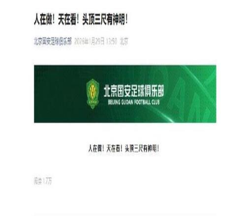 随后,北京国安在社交媒体公开回应,“人在做,天在看!头顶三尺有神明!”