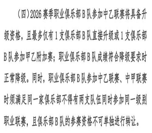 2026赛季职业联赛政策变化,升降级有调整,B队迎来新机遇