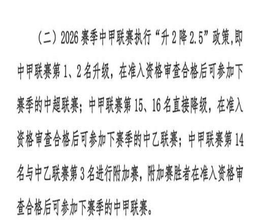 中甲联赛3月14日开赛,新赛季升级政策不变,还是前两名获得中超资格。降级政策发生变化,中甲联赛后两名直接降级,第14名将与中乙联赛第3名进行附加赛,竞争更为激烈。中乙联赛3月21日开赛,新赛季后4名球队直接降级,这一政策没有变化。升级层面,中乙前两名获得中甲资格,第三名获得冲甲附加赛资格,这对中乙参赛队来说是个好消息。